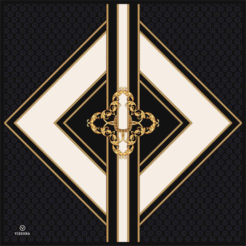 Large Pure Silk Scarf for Women - Elegant Black Gold Geometric Print - 100% Natural Twill Silk - Hand-Rolled Hem - Luxury Gift Boxed