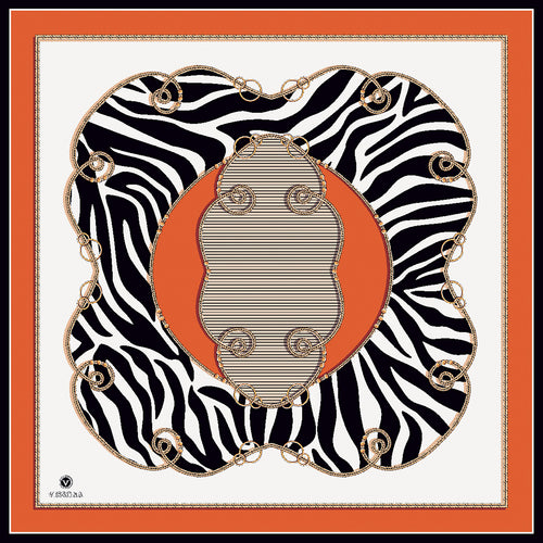 100% Twill Silk Geometric Patterned Scarf - Beige & Copper 35x35 inch (90x90 cm) - Hand-Rolled Edges